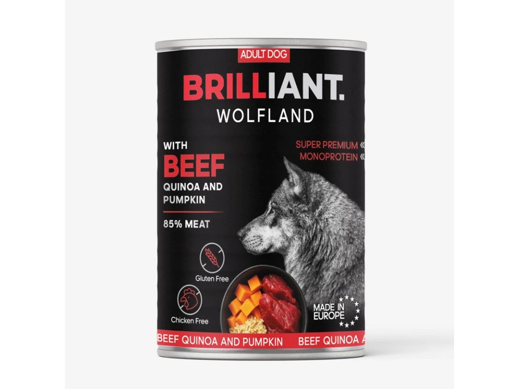 Zloženie: 85% hovädzie mäso, 5% quinoa, bylinky, tekvica, lososový olej, vitamíny a minerálne látky.