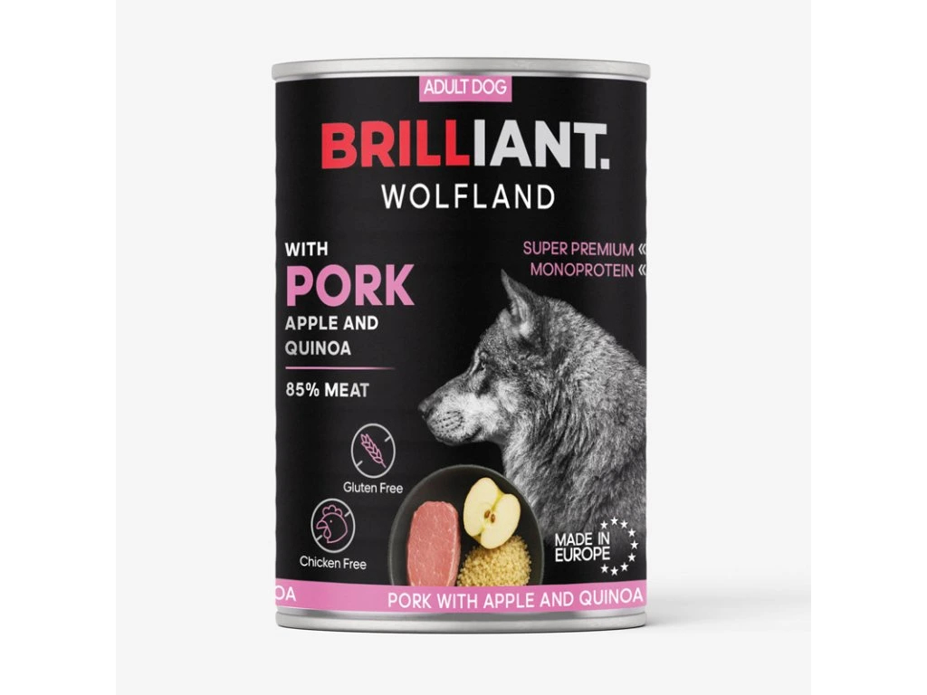 Zloženie: 85% bravčové mäso, 5% quinoa, jablko, bylinky, tekvica, lososový olej, vitamíny a minerálne látky.